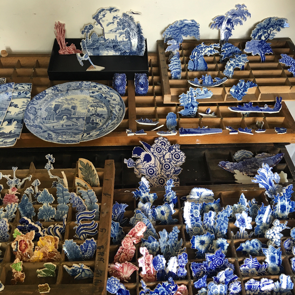 In 2015 I started harvesting details from fragments of early nineteenth century Willow pattern transferware plates.