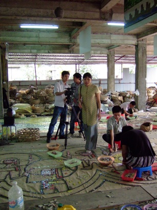Thu Thuy and film crew in Mosaic workshop and on the road filming installed mosaic (view below)