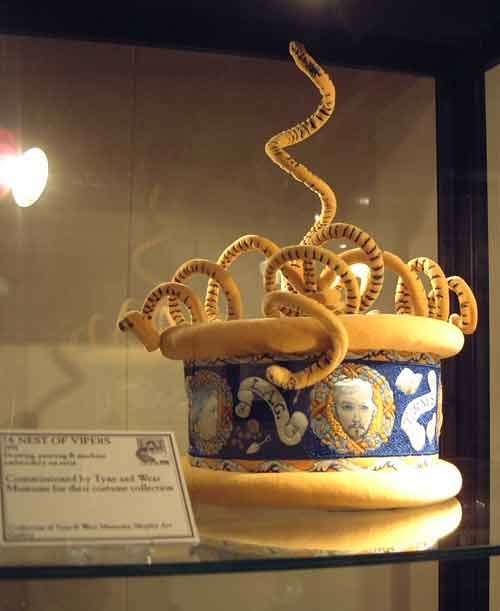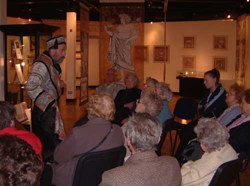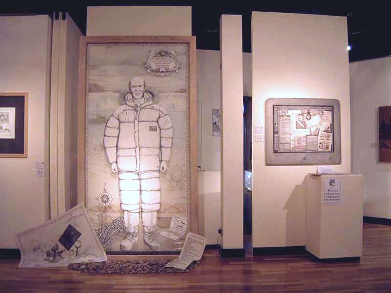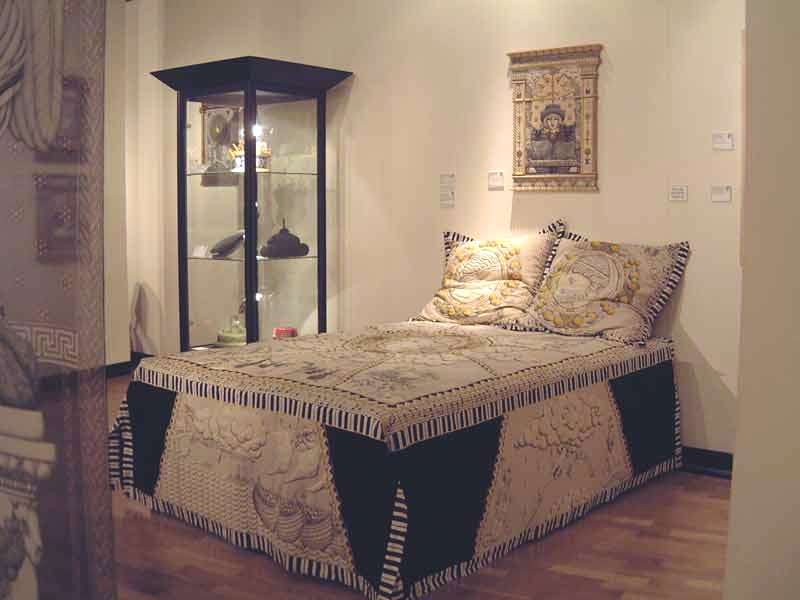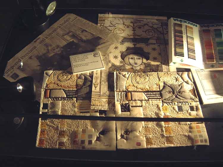 Featuring works from private and public collections, and specially commissioned pieces, the exhibition at the Harbour Gallery was retrospective in nature, covering work spanning almost 30 years, from early hand-embroidered pieces, to later drawn and machined works, drawings on paper, and book illustrations. The show included wall wall-hung works, counterpanes, and garments, including, for two days, the amazing story-telling coat commissioned for Taffy Thomas www.folkmusic.net/taffythomas/. The exhibition also included exclusive insights into Paddy’s drawing books, source materials and working methods. |